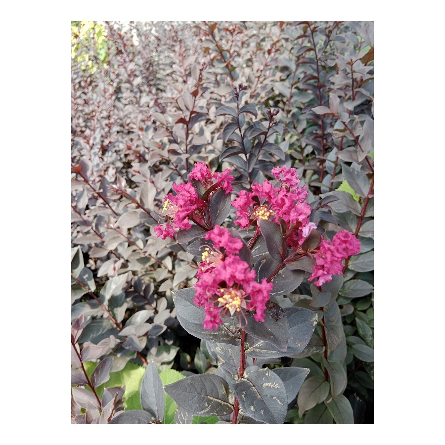Lagerstroemia Black Diamond to wyjątkowa seria odmian Lagerstroemii, znana z intensywnie ciemnego, niemal czarnego ulistnienia oraz efektownych, kolorowych kwiatów. Rośliny te osiągają wysokość od 3 do 3,7 metra i szerokość od 1,8 do 2,4 metra, co czyni je idealnymi do uprawy jako niewielkie drzewa ozdobne lub większe krzewy .